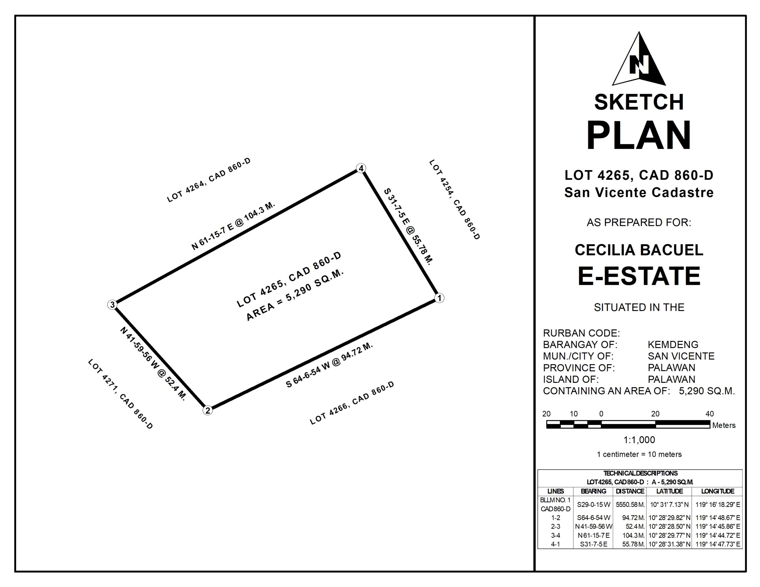 SV04-001-0270 | Titled | 5,290 m2 / 1.3 Acres | GPS – 10.4749, 119.2463 | Kemdeng, San Vicente, Palawan | ₱3,500/m2 / ₱18,515,000 / $314,218