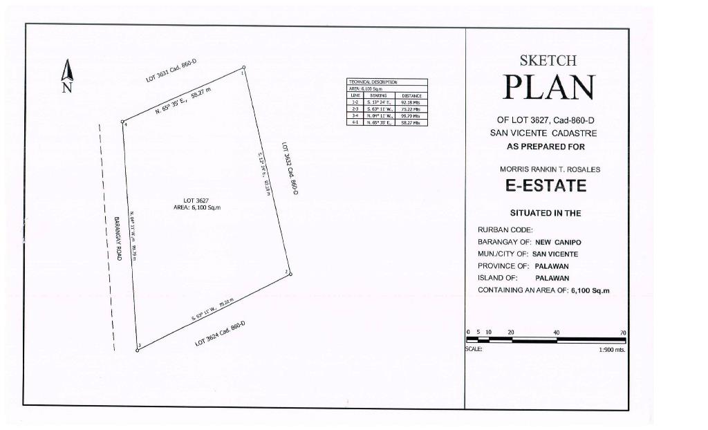 SV06-001-0083 | Titled | 6,100 m2 / 1.50 Acres | GPS – 10.7339, 119.3459 | New Canipo, San Vicente, Palawan | ₱10,000/m2 / ₱61,000,000/ $1,058,853