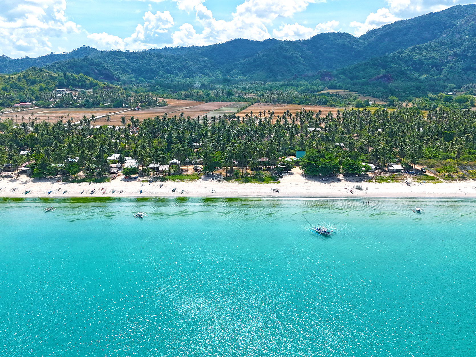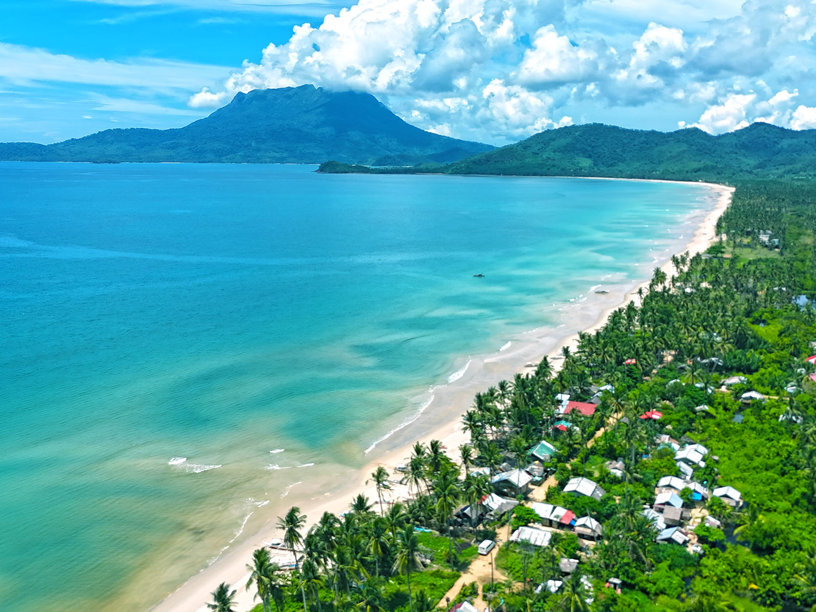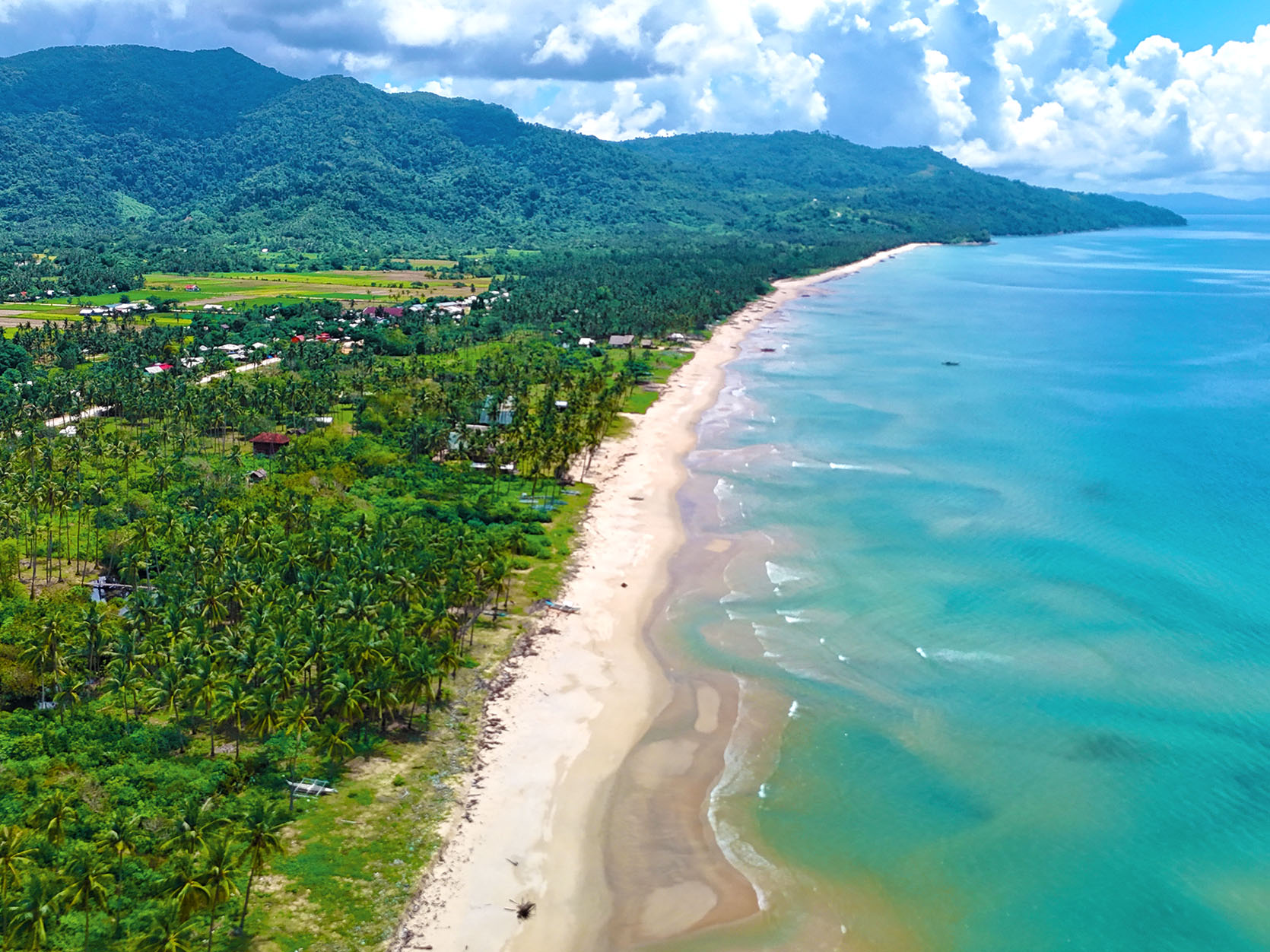 This white beach property has 41.26 meters of wide tropical beachfront with road access. The interior of this beach lot is flat with an easy slope, planted with coconuts throughout. The property is positioned in the upper area of the popular tourist destination of San Vicente Long Beach, which affords quiet and protected environments. The surrounding ocean has substantial coral reefs, and Imuruan Island is ideal for swimming and water sports.